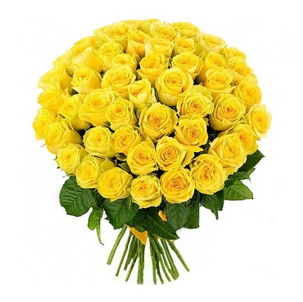 Букет состоит из 51 желтая роза, прозрачная упаковка, атласная лента.